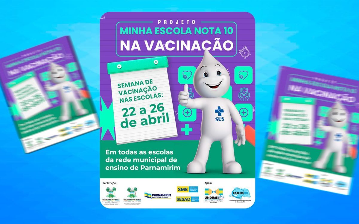 A Prefeitura de Parnamirim, através das Secretarias Municipais de Saúde (SESAD) e Educação (SME), convida os pais para atualização da caderneta vacinal de crianças e adolescentes, no período de 22 a 26 de abril.