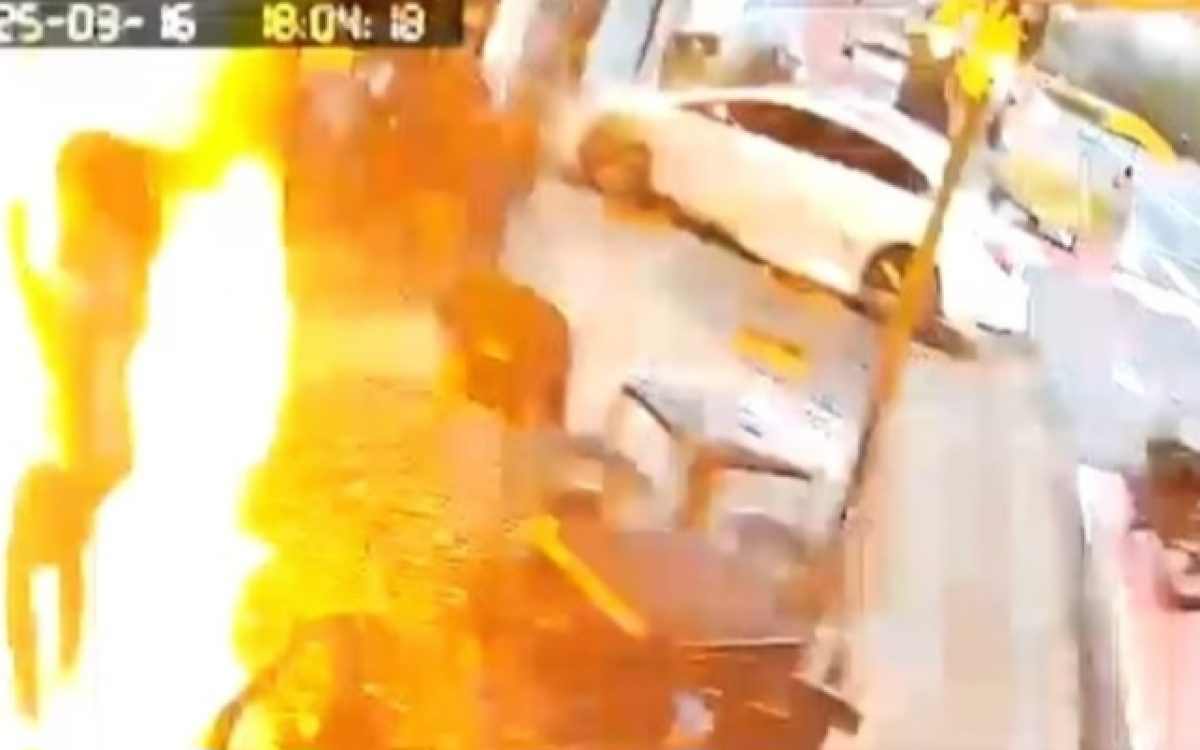 Câmeras de segurança mostram o momento em que a explosão acontece.