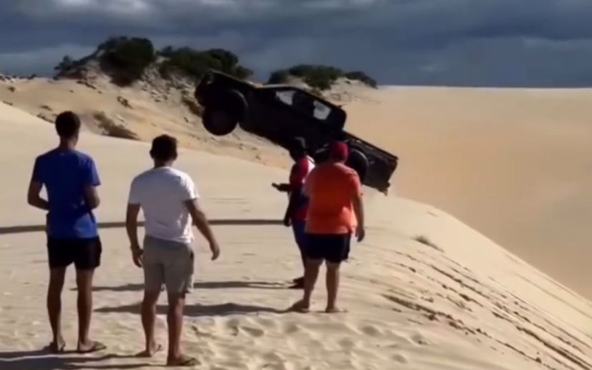 Segundo testemunhas, o motorista perdeu o controle ao tentar transpor uma das dunas mais íngremes da região. O carro acabou ganhando impulso, decolando e caindo com força no solo. Apesar do impacto, o condutor saiu ileso, mas o veículo teve a parte inferior seriamente danificada.