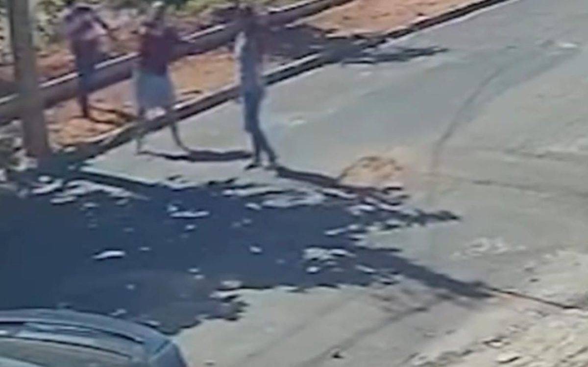 Os familiares do homem que foi m0rto durante uma tentativa de assalto a um mercadinho em Mococa, no interior de São Paulo, voltaram ao local do crime para apedrejar o estabelecimento e acabaram destruindo o carro que estava estacionado à frente.