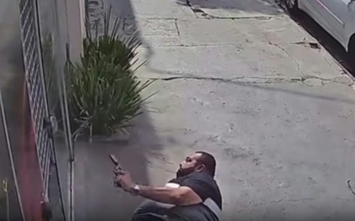 Nas imagens obtidas é possível ouvir o disparo. Em seguida, a vítima sai correndo e gritando, enquanto o autor do tiro cai em frente ao salão. Logo depois, ele se levanta, volta ao local, pega o sapato e vai embora, descalço.