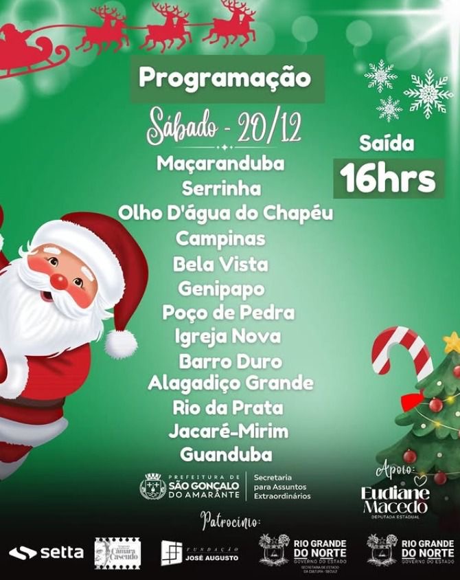 A secretária de Assuntos Extraordinários de São Gonçalo do Amarante, Mada Calado, anunciou e convocou a população para participar da programação especial de Natal que será realizada nos próximos dias no município.