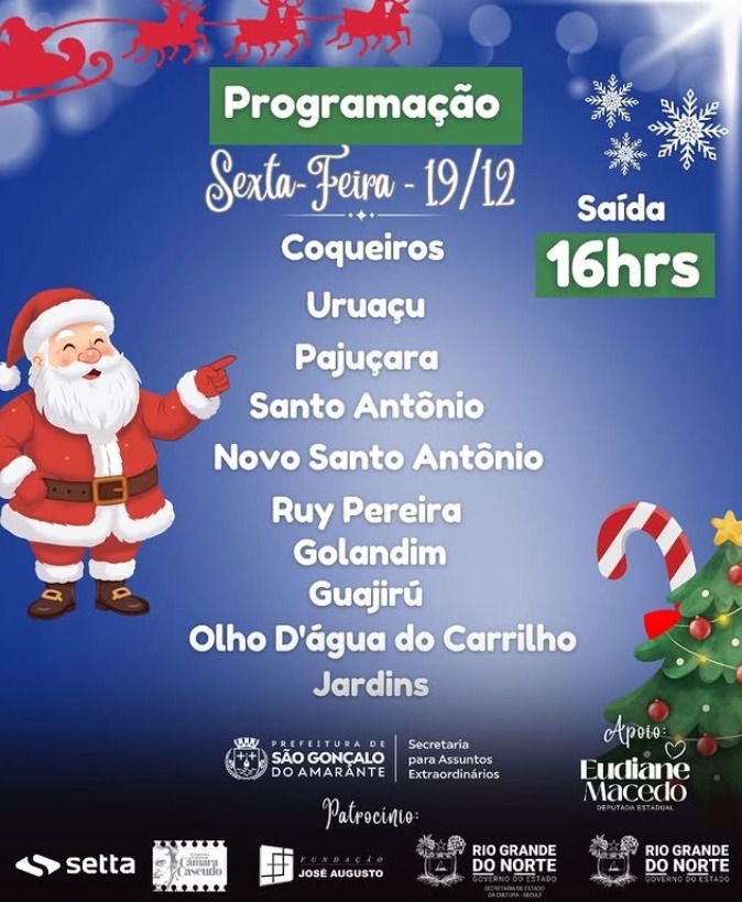 Segundo a secretária, o Papai Noel vai percorrer todas as comunidades, levando alegria às crianças e às famílias. A ação inclui a distribuição de 10 mil lancheiras, sob coordenação direta de Mada Calado, nos dias 19, 20 e 21 de dezembro.