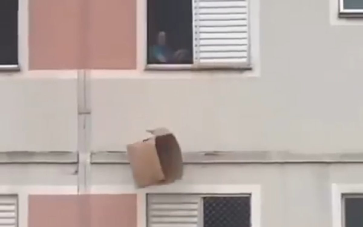 Mulher salva cachorrinho de cair do último andar de um prédio em Guarulhos. O animal que estava preso em janela, ao cair caiu diretamente dentro da caixa que a moradora segurava em mãos, nas redes a mulher foi muito elogiada por internautas pela coragem e força de pegar o cachorrinho