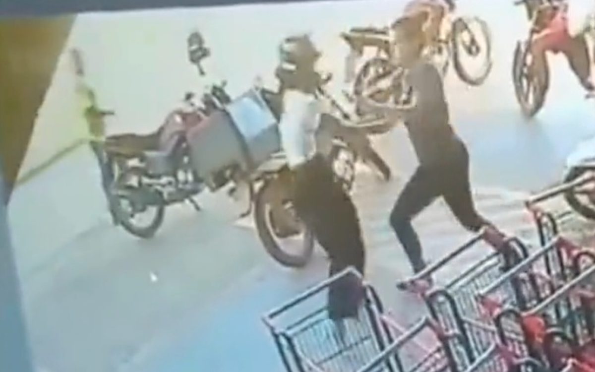 A agressora foi identificada pela vítima como Evelyn Poliana de Oliveira. Em um registro feito pelas câmeras de segurança, é possível ver o momento em que a suspeita ataca a vítima, que está de capacete.