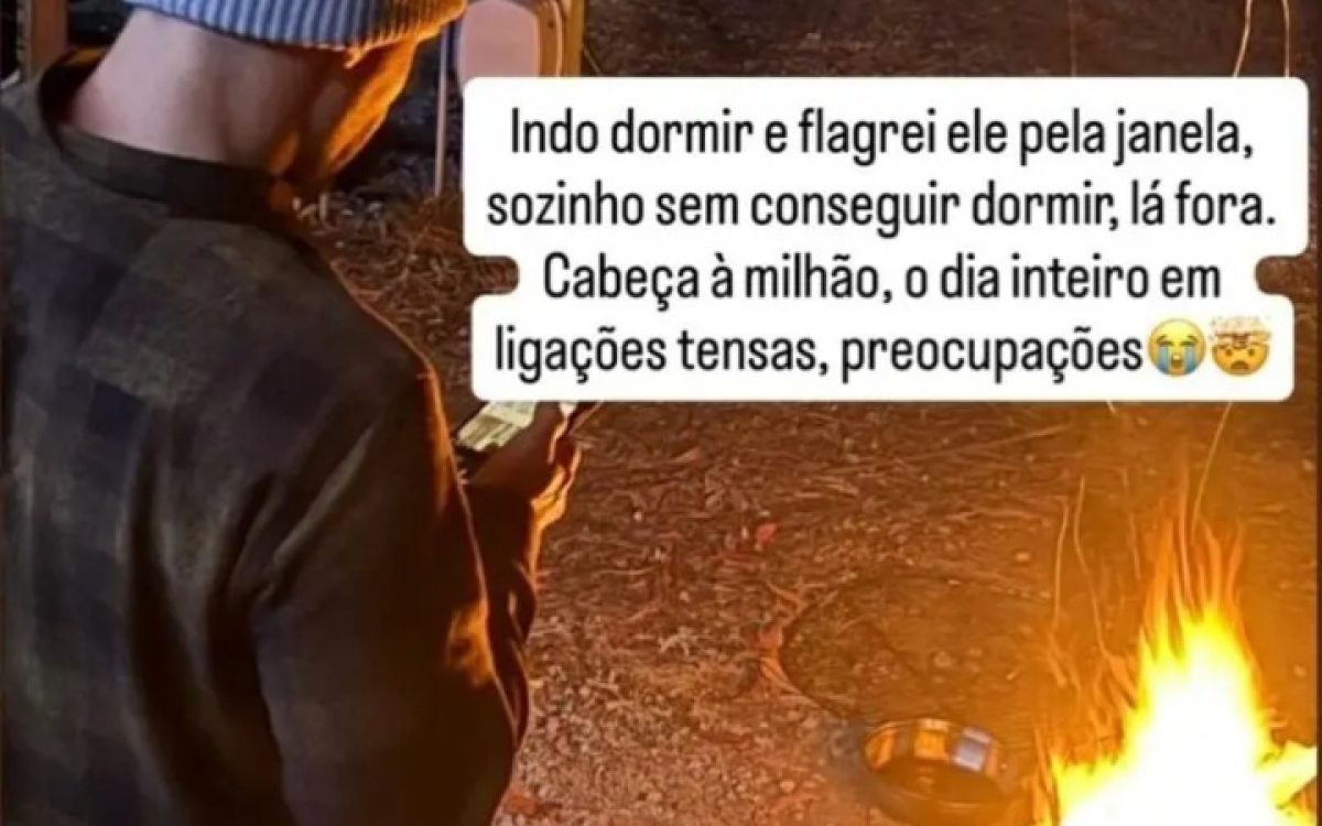 “Indo dormir e flagrei ele pela janela, sozinho sem conseguir dormir, lá fora. Cabeça à (sic) milhão, o dia inteiro em ligações tensas, preocupações”.