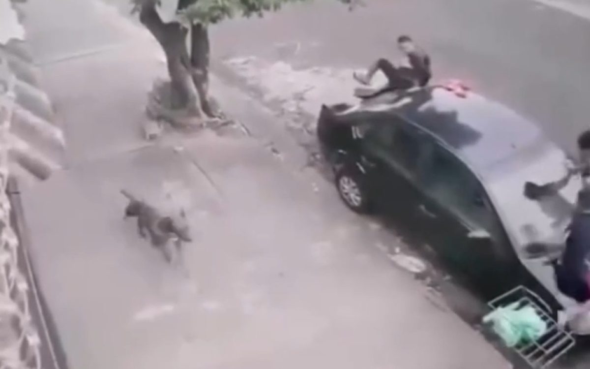 Um grupo de crianças passou por momentos de pânico na tarde deste domingo (15), no bairro Santo Antônio, em Jaboticabal (SP), após um pit-bull solto correr em direção a elas. Assustadas, as crianças tentaram se proteger subindo no capô de um carro estacionado na rua. A cena foi registrada por uma câmera de segurança de uma residência próxima.