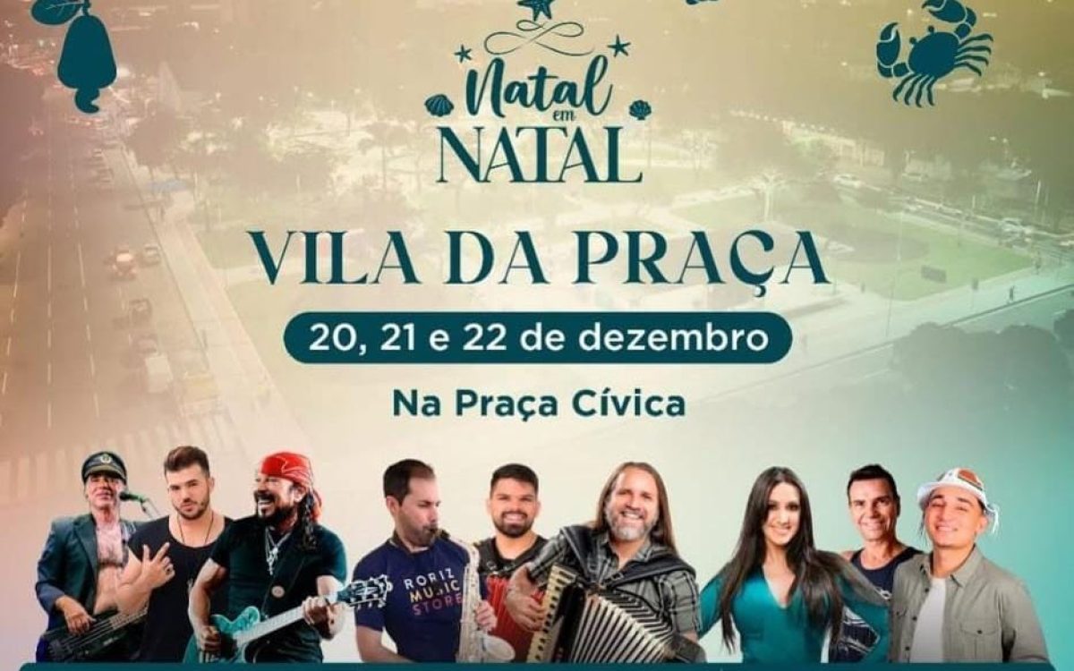 A Praça Civica receberá o festival Vila da Praça, que contará com shows gratuitos de Bell Marques, Dorgival Dantas e João Gomes, a programação faz parte do Natal em Natal 2024, organizado pela prefeitura do Natal.