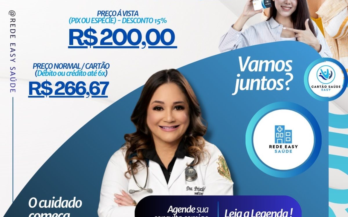 Com a Dra. Priscila, os pacientes têm acesso a um atendimento humanizado, especializado e com condições facilitadas, incluindo valores exclusivos para quem utiliza o Cartão Saúde Easy e o Easy Premium.