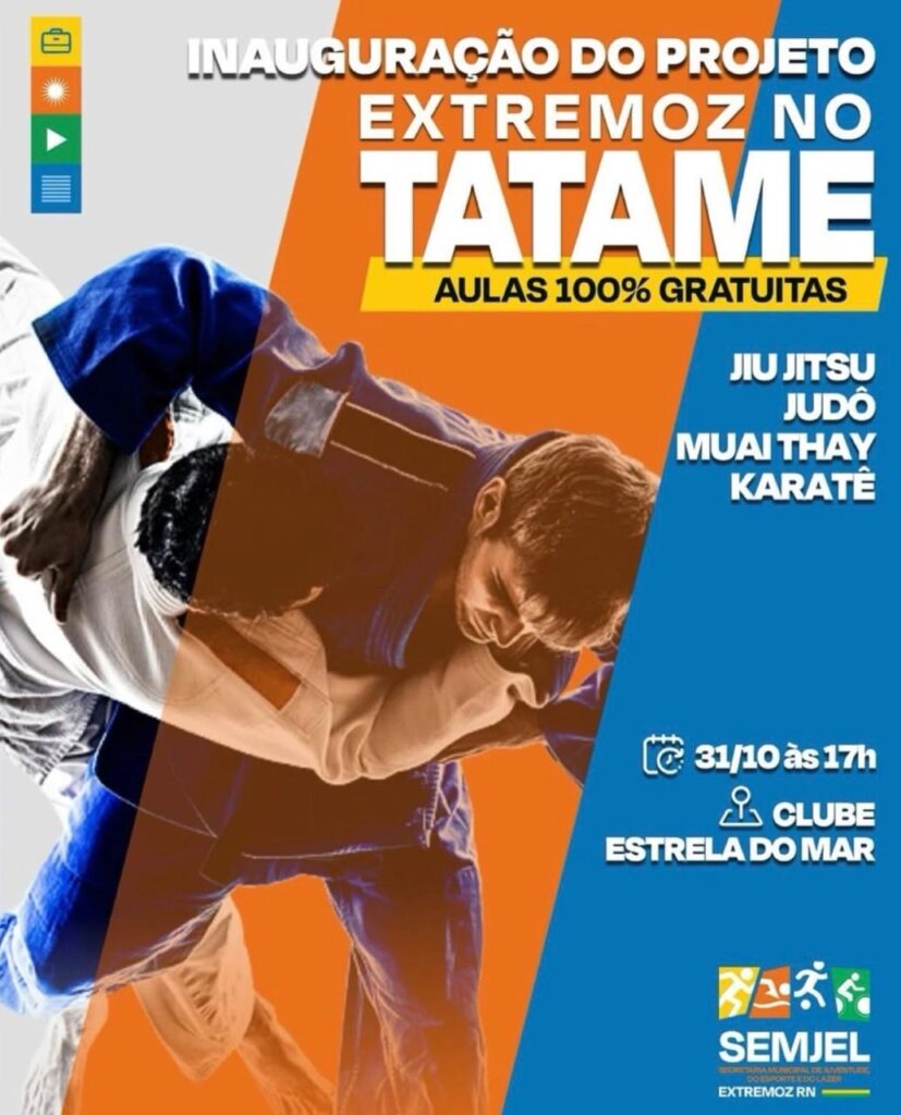 A Prefeitura de Extremoz inaugura nesta quinta-feira (31) o Extremoz no Tatame, espaço que vai oferecer aulas gratuitas de Jiu-Jitsu, Judô, Muay Thai e Karatê à população, reforçando o compromisso do município com inclusão social e incentivo ao esporte.