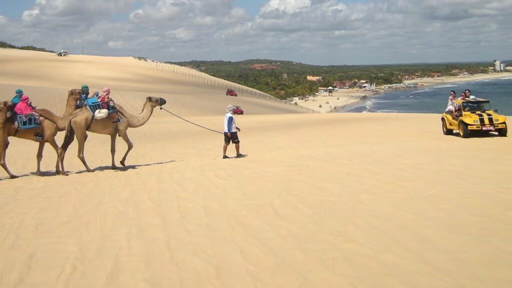 Na matéria, o portal ressalta a força visual das dunas móveis de Genipabu, moldadas constantemente pelos ventos, criando um cenário que se renova a cada amanhecer. O texto também evidencia a combinação entre aventura e contemplação, com destaque para os passeios de buggy credenciados, a travessia de balsa pelo rio, a lagoa de águas doces e mornas e a famosa visita aos dromedários, elementos que transformaram Genipabu em cartão-postal do Rio Grande do Norte.