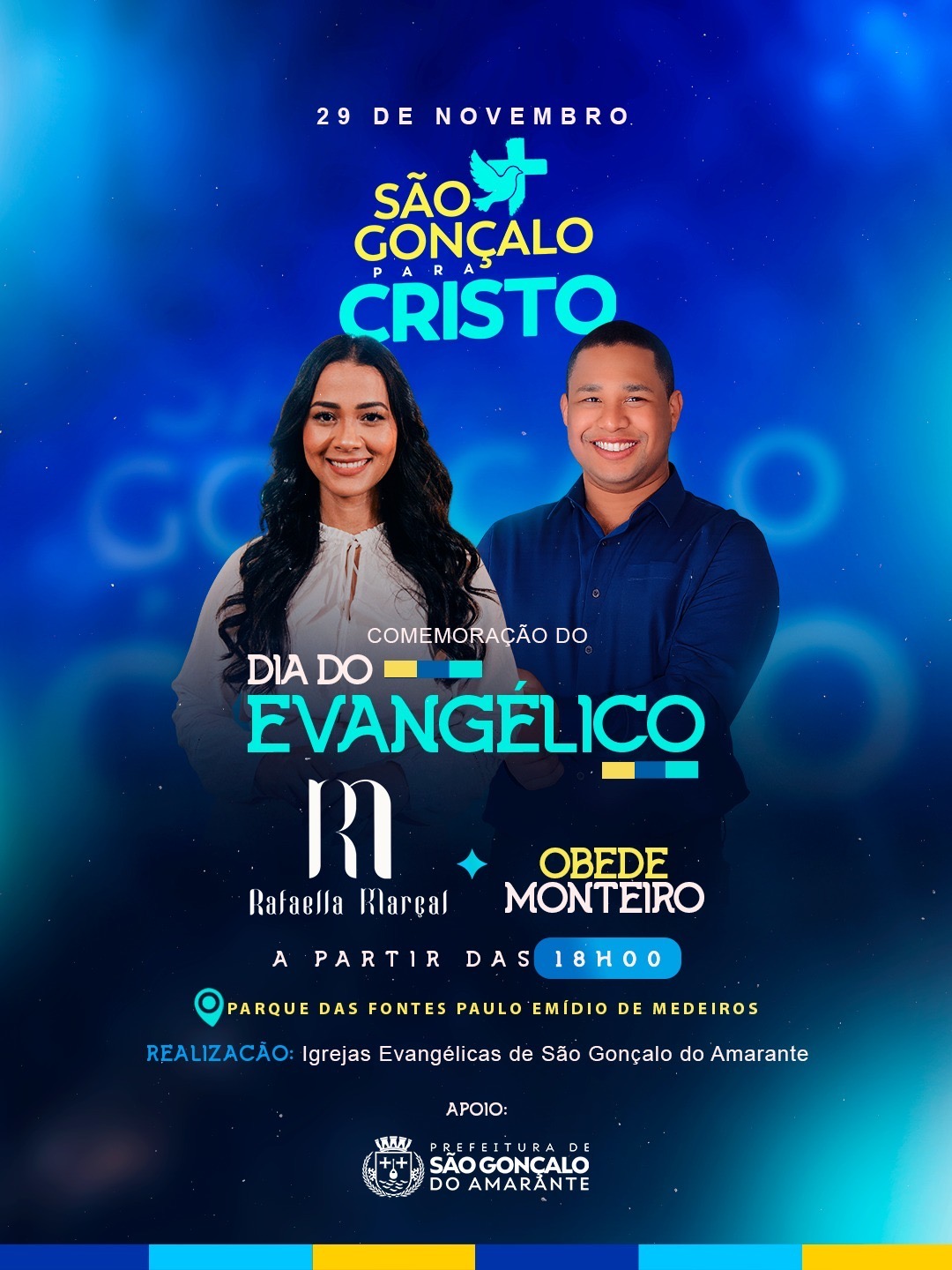 O município de São Gonçalo do Amarante será palco, nesta sexta-feira (29), de um grande encontro de fé e celebração cristã. A partir das 18h, o Parque das Fontes recebe o evento São Gonçalo para Cristo, que promete reunir famílias e fiéis em uma noite de louvor, adoração e comunhão.