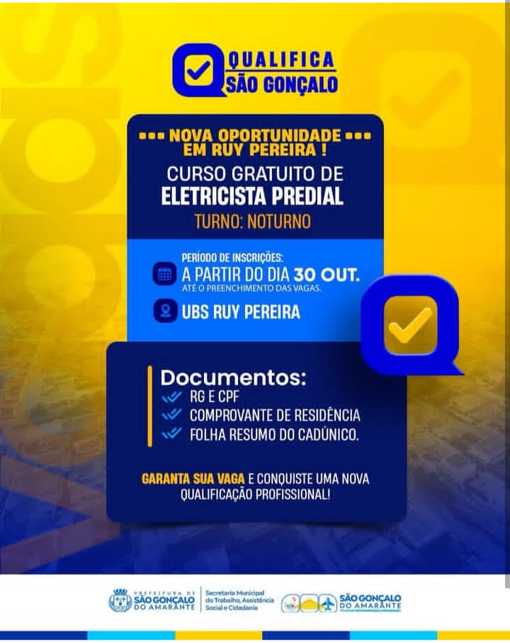 Atenção, galera de São Gonçalo do Amarante! 💪 O Qualifica São Gonçalo está trazendo mais uma oportunidade imperdível pra quem quer crescer profissionalmente! 🚀